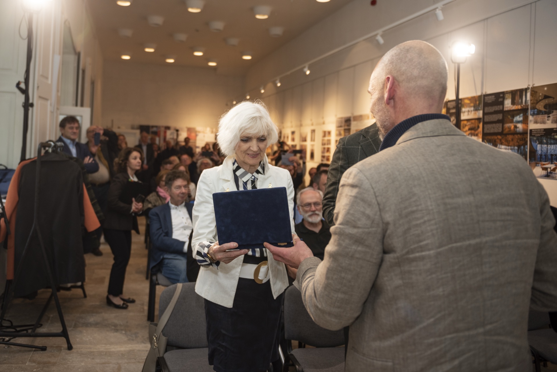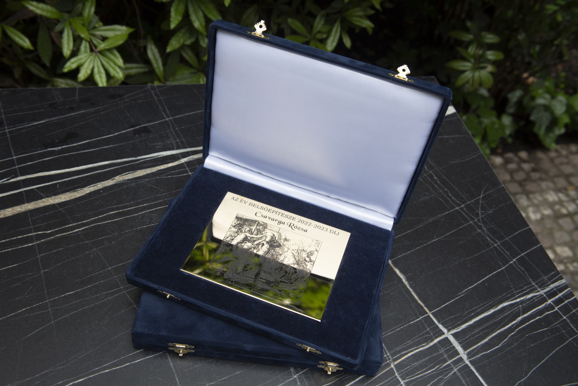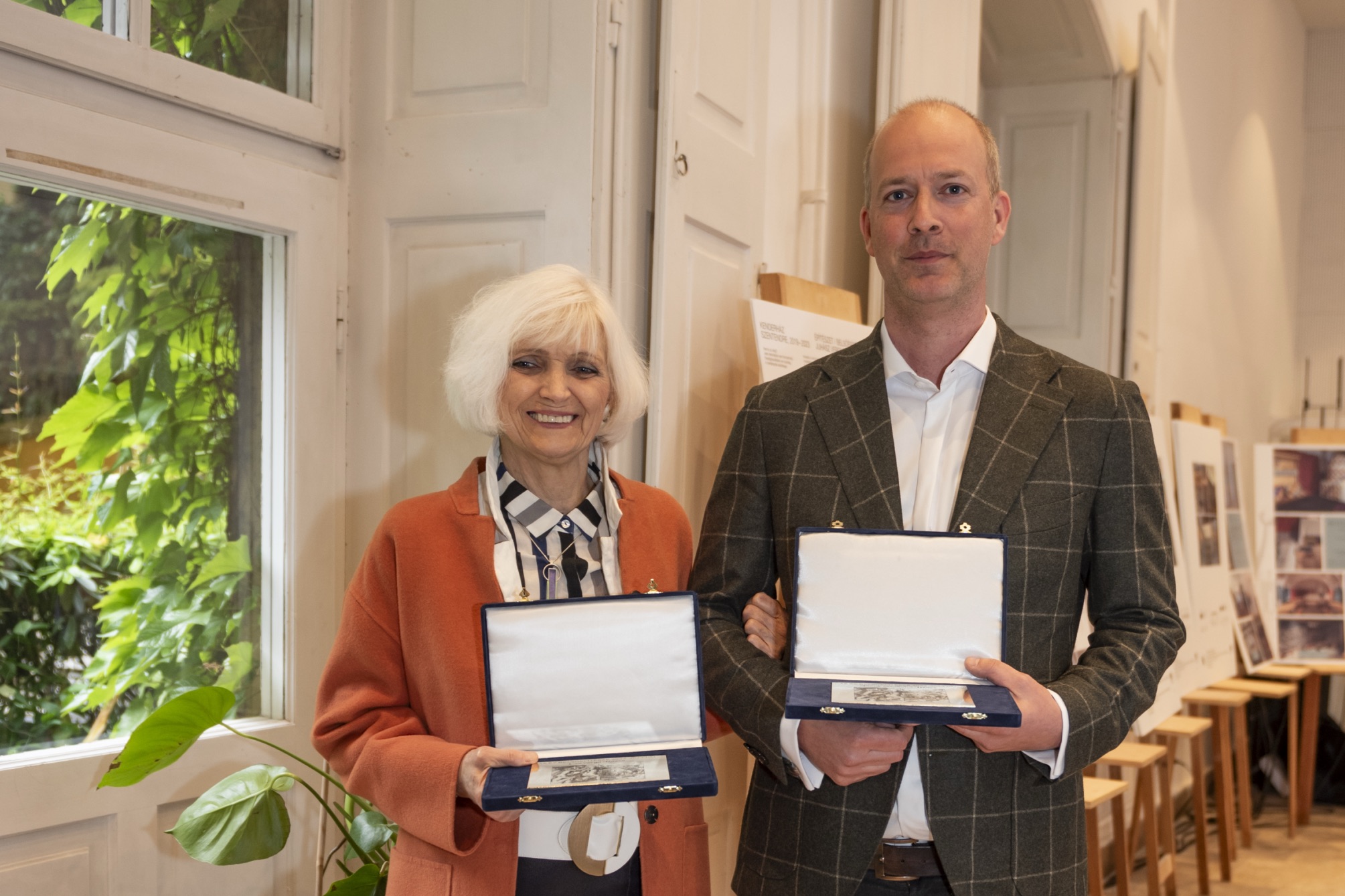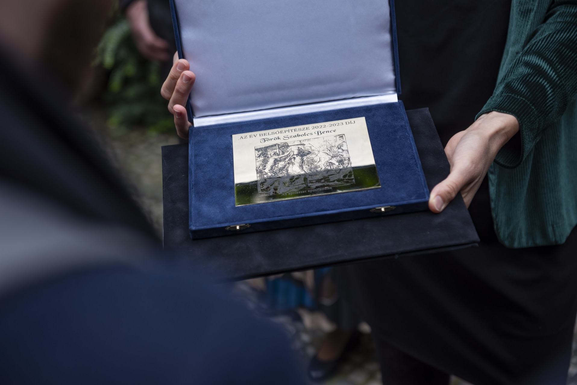 A díjazott, a kitüntetést tanúsító aranyozott bronz emlékplakettet Ferencz Marceltől, a zsűri elnökétől és az alapítótól Laki Pétertől vehette át.